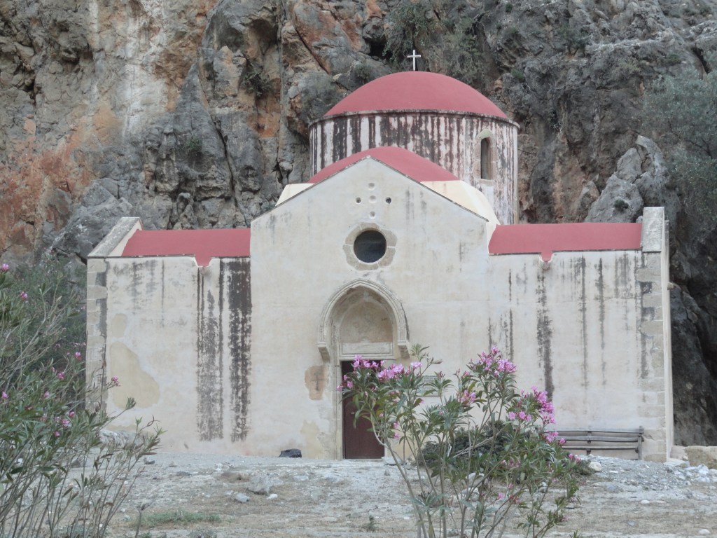 Or you could go for a walk in one of the gorges where the mountain goats are your only company and sometimes you may chance upon a team of rappellers. We received directions to a gorge (drive a bit, leave the car, walk in the gorge and come back) from our BnB host. And so we went. The Aghiofarango Gorge leads to a beach. Halfway across the way one comes across the quaint little Aghios Andonios Church.