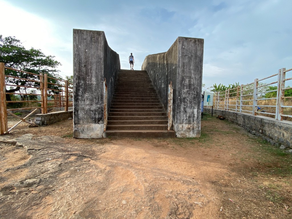 The watch tower is shaped like a fort. The rounded wall bears several embrasures with crenellations on top of the tower. A few steps is all it takes to get to the top of the tower which gives a sweeping view of the Arabian Sea. Behind the fading board is a small gate that is locked. According to stories I have heard, there is a tunnel that goes all the way to Mysore which was Tipu’s seat of power; and as it cannot be verified, it remains just that – a story.