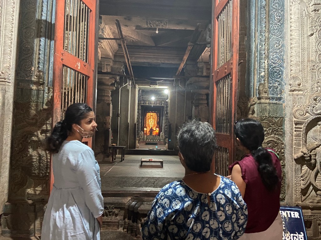 Day 3 saw us visit the ‘Shri Tribhuvana Tilaka Choodamani Basadi’, commonly known as the ‘1000 pillar basadi’ in Moodabidri, an hour away from Mangalore. The basadi or Jain temple was built by a local chieftain in 1430 and got a facelift in the 1960s. The upper wooden structure has the look and feel of local temples in the area while the lower level carries the typical architectural style of Jain temples in stone. It is not as grand or large as the temples of Gujarath or Rajasthan or our very own Hoysala temples in Belur, Halebid and Somanathpur, but is still an imposing place of worship with an air of dignity, quiet and peace around it. The temple is dedicated to the 8th Thirthankanara Chandraprabha.