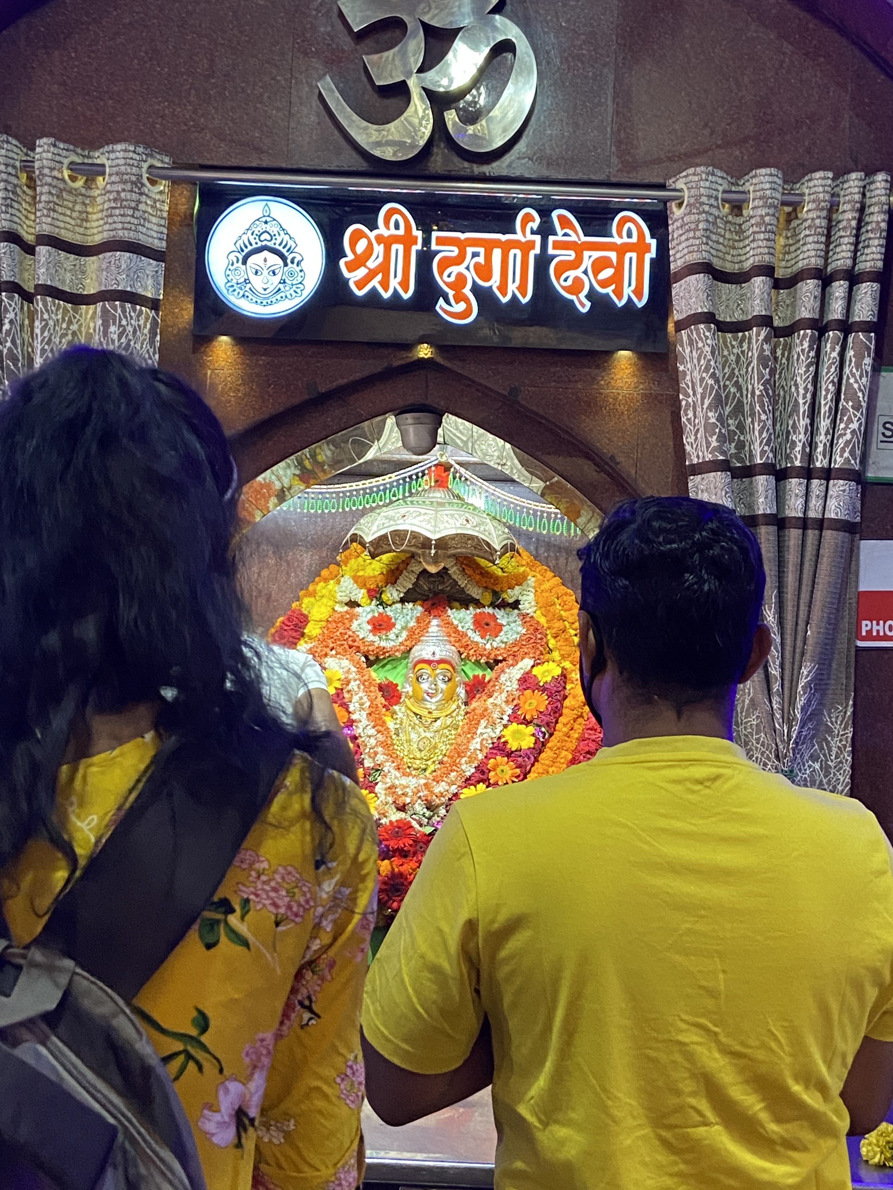 While some worshippers park their vehicles and enter the temple for a closer interaction with the deities, most others stop on the narrow road, fold their hands, pay their obeisance and move on.