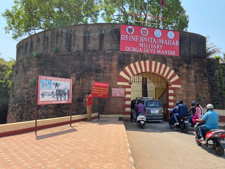 I remembered about this Bullet Bike / Om Banna / Bullet Baba temple (as it is also known) when recently I was at this other equally fascinating place inside Belgaum Fort – the Military Durga Devi Mandir, a drive-thru temple if you will please!
