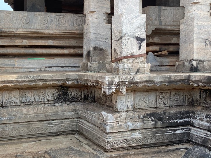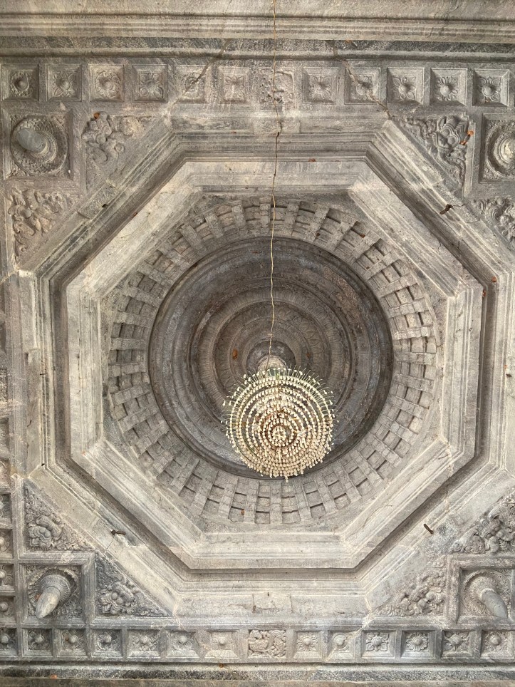 Ever since my trips to Belur, Halebid and Somanathpur, I tend to look at the ceiling, base platform and pillars for architectural splendour when visiting a temple or a basadi. While it is easy to have these expectations for every temple, what one must realise is that sculpting is very dependent on the hardness of stone used and skill available at that point in time.