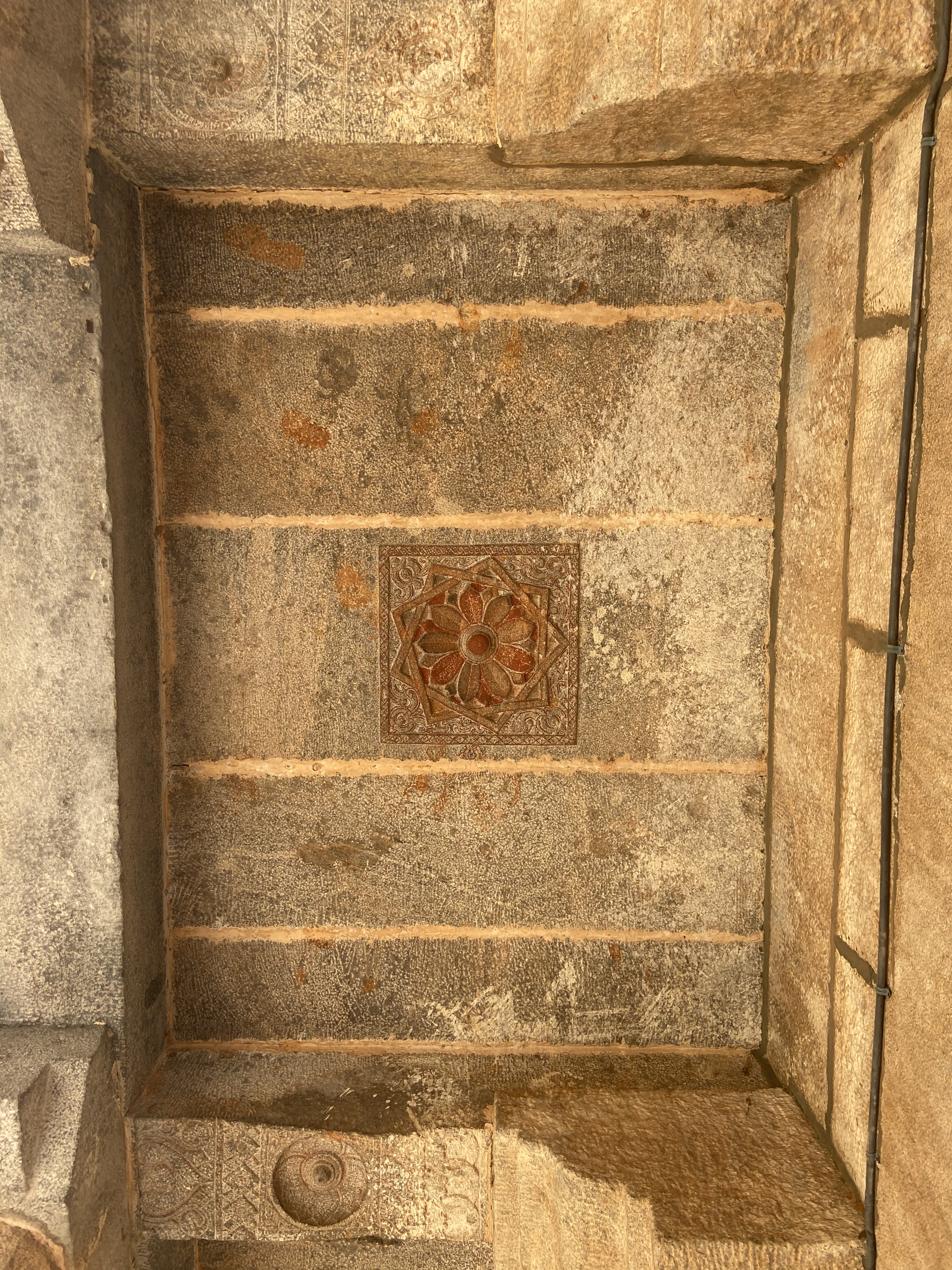Except for the central ceiling of the mantapa (open hall) this basadi has simple ceiling patterns.