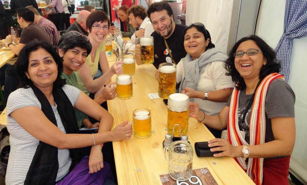 We have never giggled and laughed as much as we did on this trip. I was going through the pictures and realised – those were paper maps/digital camera days and using googlemaps/smartphones was still not exactly the norm 🙂 Suman has managed to take a few selfies of herself with a digital camera 🙂 Her set of pictures clearly indicates her artistic bent of mind – a pretty flower here, a cute house there, a lovely signage here, she has captured it all! And there are so many pictures where we are laughing so wholeheartedly that it appears like we spent 3.5 days of the 7 days only laughing….What a trip it was!!! I just asked these girls what they remembered about this trip and believe it or not, the same things have been etched in our memories – all the walking and sight seeing in Vienna, sturm/chilli beer at a microbrewery, visiting a heuriger, Pertisau, all the laughter, Suman’s selfies – not sharing these as Suman is scared they ‘will go viral for stupidity’ 🙂 :-), the ‘scam opera’ as Sangita called it and in the end of all this chatter, we felt the need to hangout together again on a trip like this…..