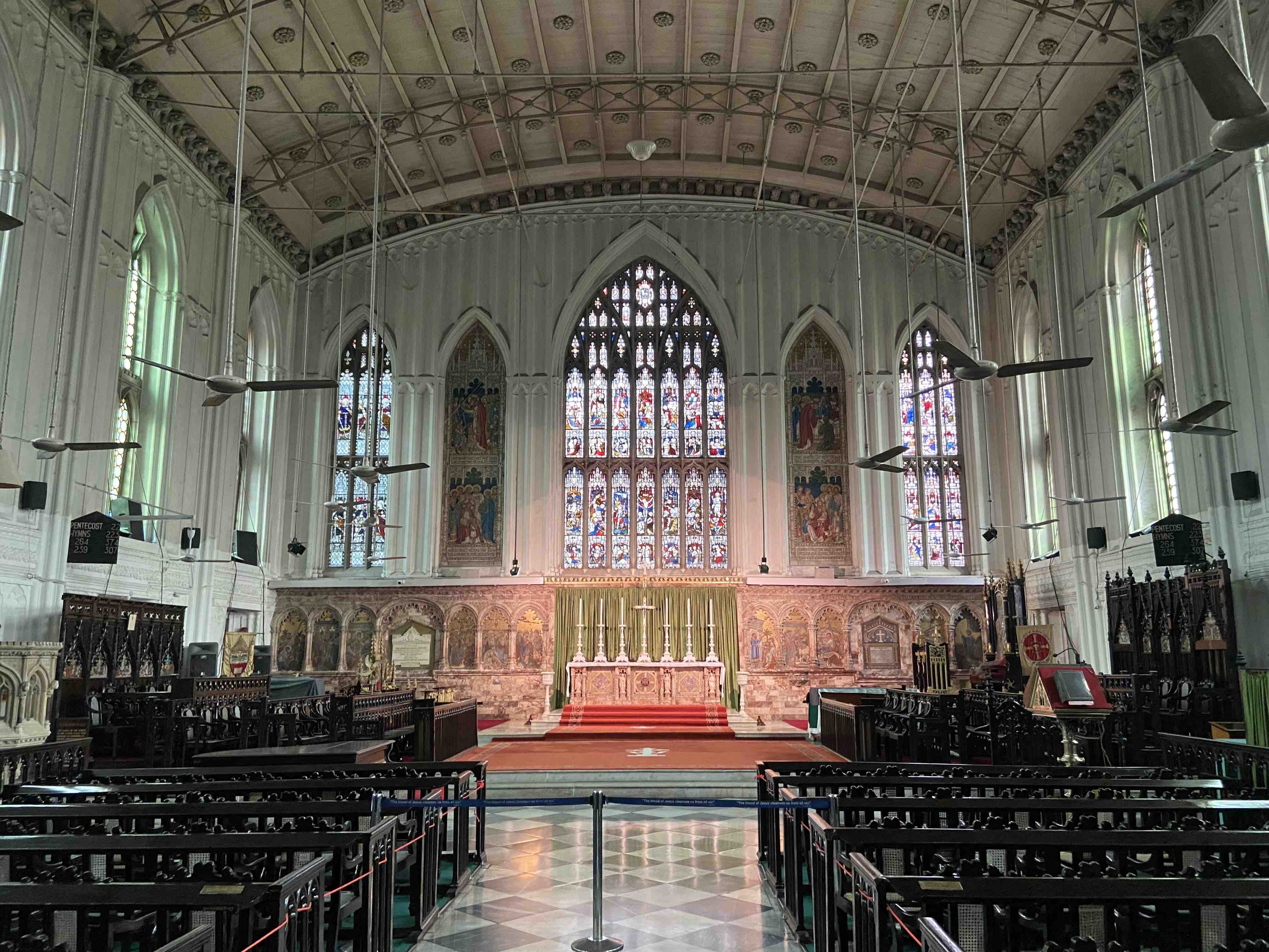 Once we were done with the garden we went across to visit St. Paul’s Cathedral. Calcutta (as it was known before being renamed Kolkata) already had a church when in 1832 Bishop Daniel Wilson arrived to become Calcutta’s 5th Bishop. He envisioned a cathedral for Calcutta and it was built under his guidance and consecrated in 1847. It is a simple but tall house of prayer with stained glass altar and windows.