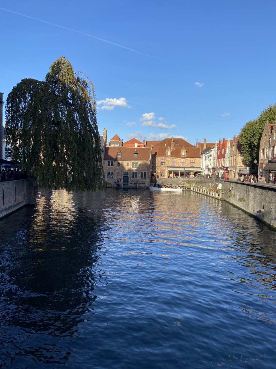 We continued, crossing over the canal at Molenbrug, where the dyers’ dock (Verversdijk) used to be. Molenbrug gets its name from a mill that was located here. It is one of the prettier bridges in Bruges with several restaurants along the canal. We rewound our way to the B&B with our tummies still full from the late lunch and called it a day.