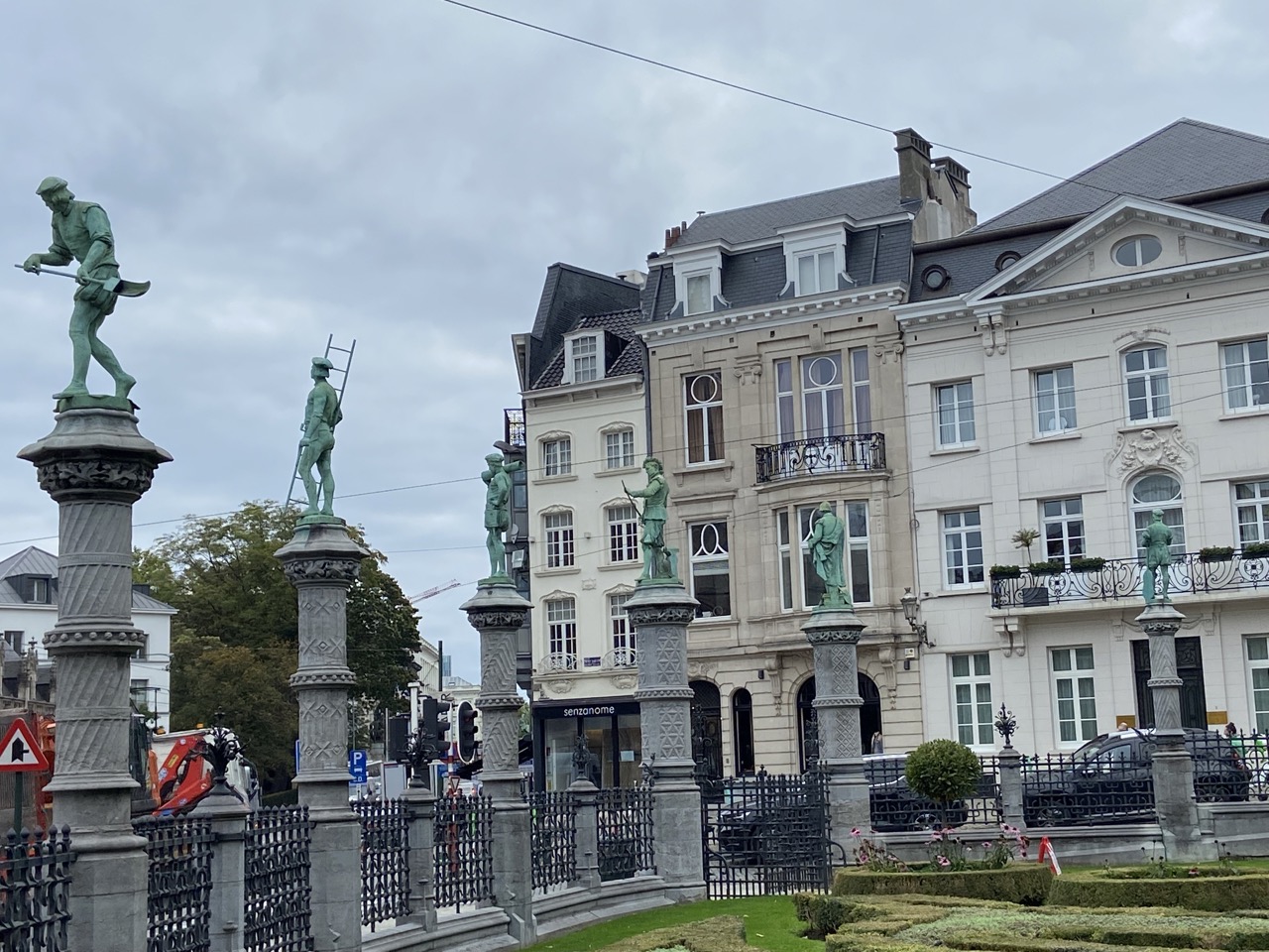 What makes this little park on the side of the Church of our Lady of Victories of Sablon special is the circle of 48 statues of the guild masters holding the sign of their trade along the park’s periphery. There are statues of gentlemen important to Belgian history inside the park and other symbols associated with the political history of Belgium.
