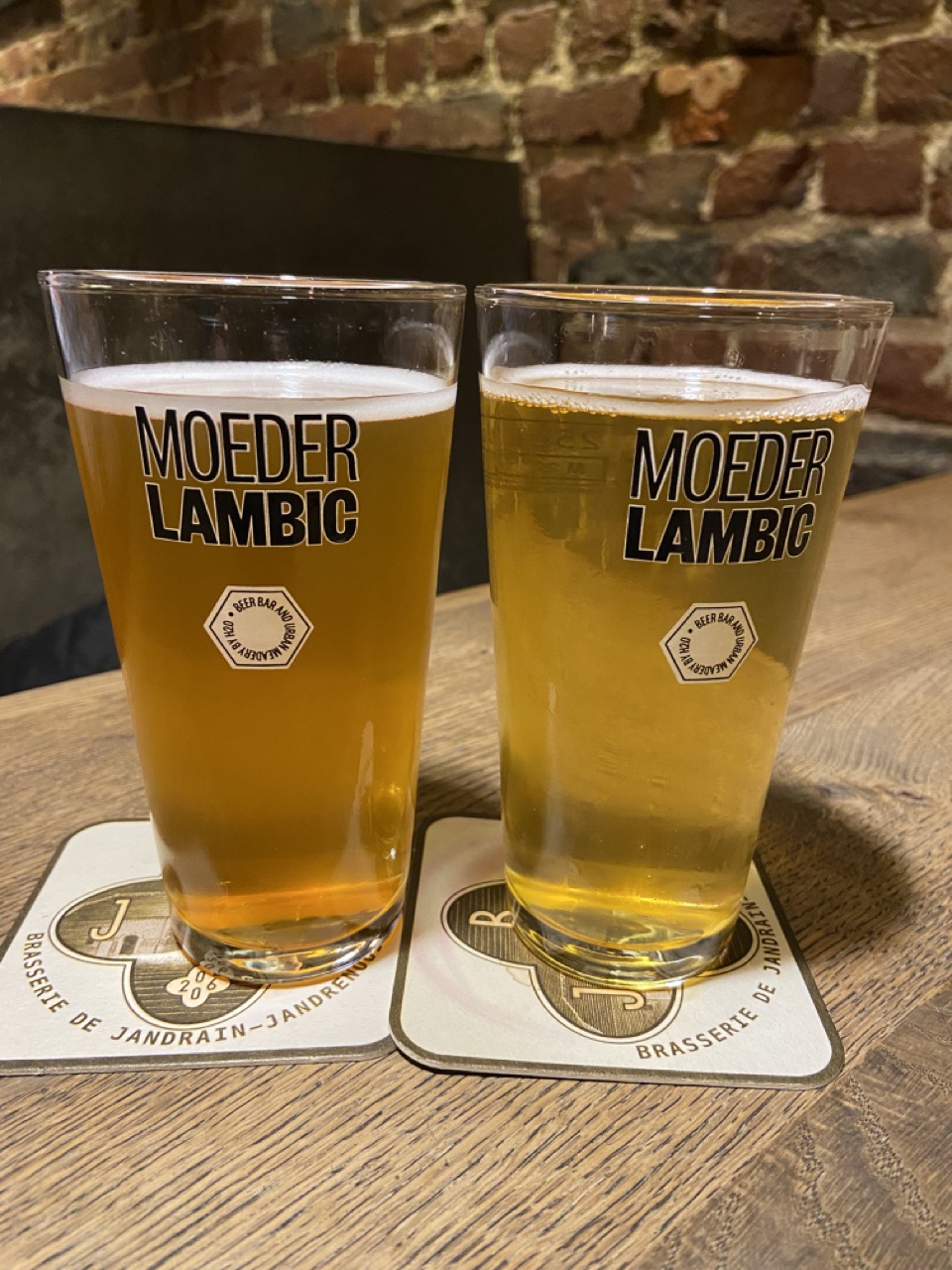 Belgium is famous for its beers. Its beer culture is listed under UNESCO’s Intangible Cultural Heritage. We visited Moeder Lambic, known for its collection of all kinds of Belgian beers available on tap. I am not a fan of Lambic beer, so I enjoyed the beer a little lesser than the better half. The beer was paired with cheese, the only veg option they had, so even if we wanted to, we could not partake in something else on their short menu.