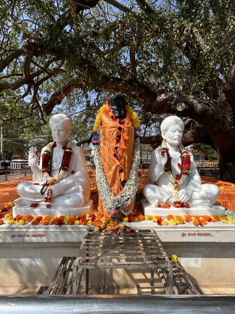 In front of the samadhi is the ‘sthambhamurthy’ of Basava flanked on either side by serene statues of Sharifa and his guru Govinda Bhatta.