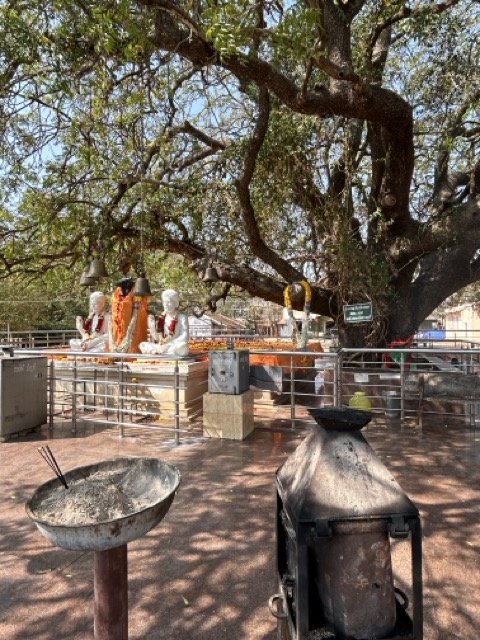 The simple samadhi covered in a chadar under a neem tree that provides shade to the samadhi greets the visitor.