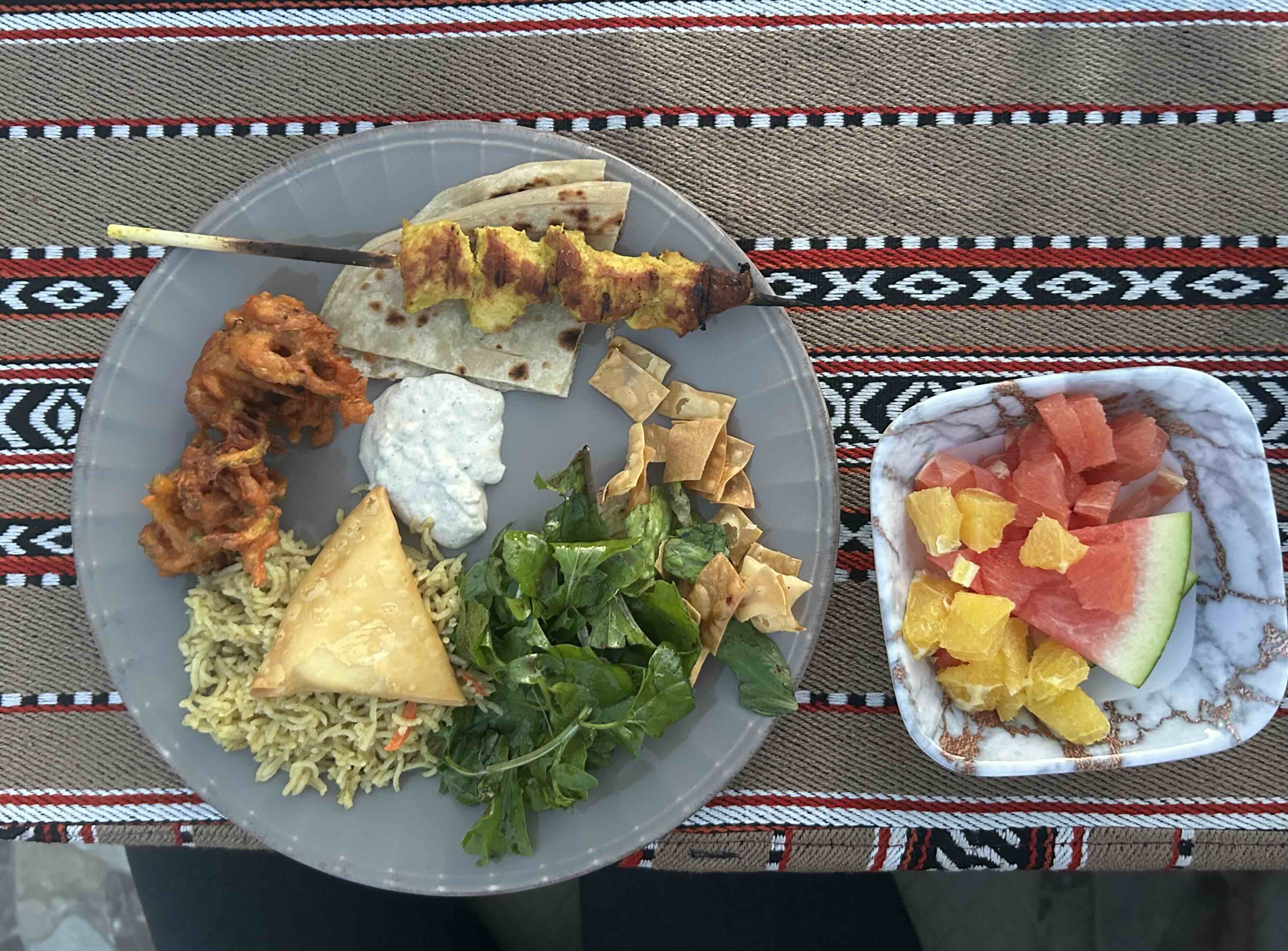 While strolling around, we discovered Al Aqur restaurant, which was ready to serve Iftar snacks and Iftar dinner. It was only then that we realised we had not eaten a proper meal since landing in Muscat and making our way to Nizwa!