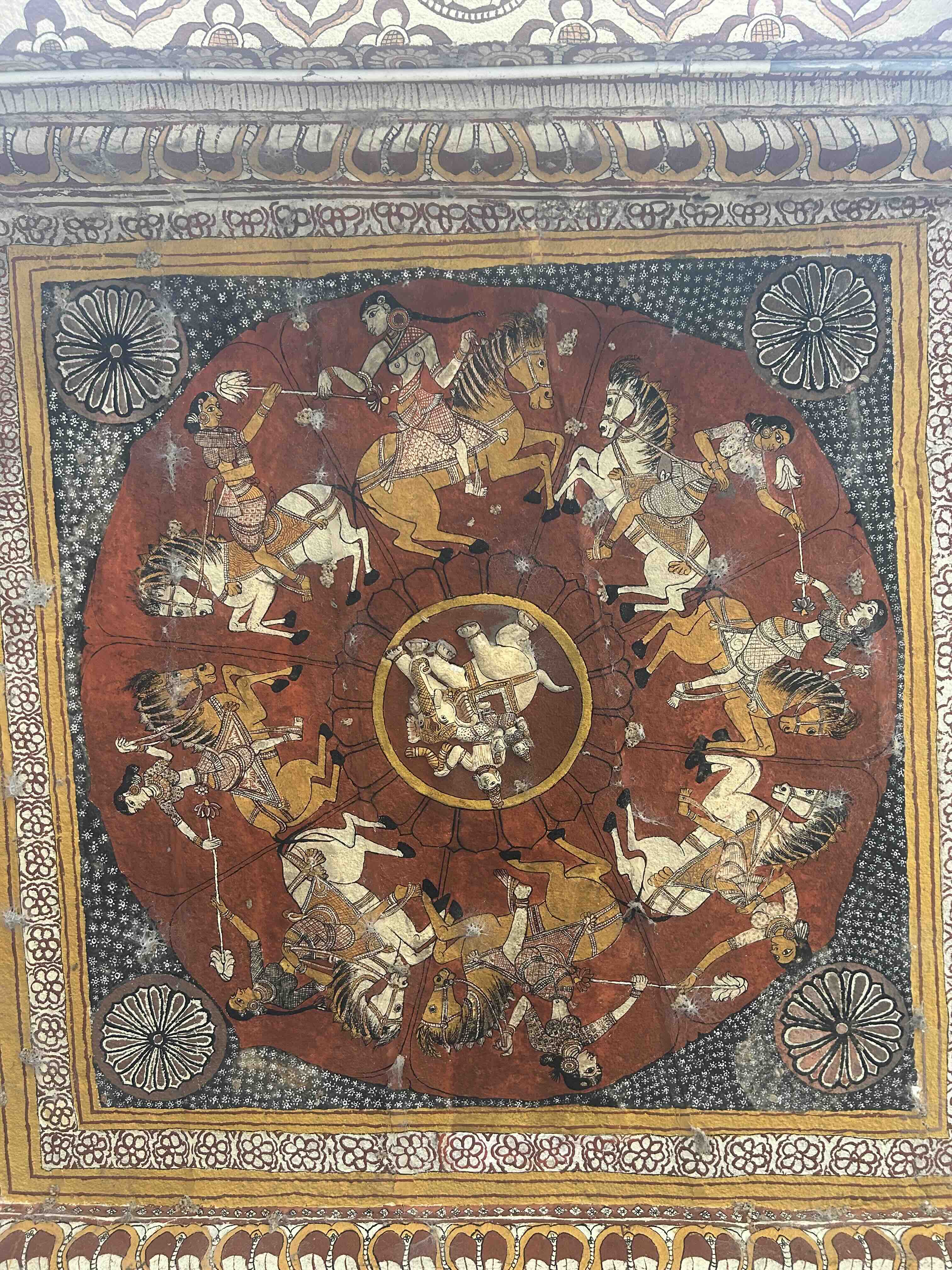 Step into the mantapa from the imposing main door, and you are instantly surrounded by vivid murals that span its length. These paintings depict the Samavasarana, the Jain emblem, episodes from Mahavira’s life, and themes from Hindu mythology. One particular painting cleverly plays with perspective, the celestial elephant, Airavatha appears differently depending on which direction you view it from!